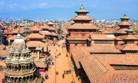 Столица Непала Катманду расположена в долине, окруженной Гималаями. В центре похожего на лабиринт старого города находится площадь Дурбар, на которой во время религиозного праздника Индра Джатра собираются танцоры в масках со всего Непала.